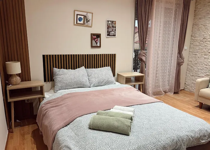 The Lazarevac accommodation boasts a balcony and a sitting area, providing guests with an iron with ironing board and air conditioning, and such media amenities as a flat-screen TV with satellite channels. The 1-bathroom villa offers a separate toilet, a bath, and a shower, as well as comfort amenities such as shower caps and bath sheets.